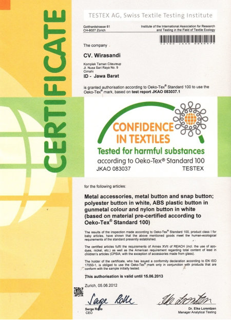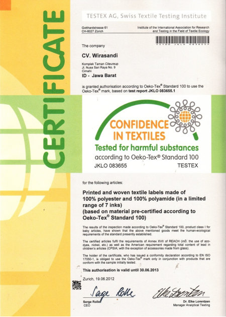 Sertifikasi Internasional Oeko-Tex Class 100